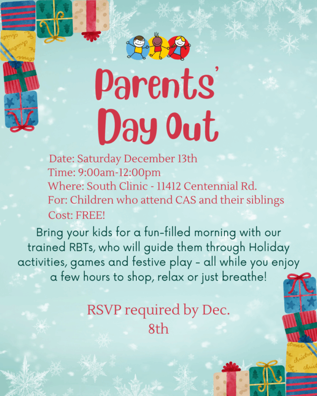 The holiday season can be busy and every parent deserves a little kid-free time! We’re excited to invite you to Parents’ Day Out at CAS, where your children will enjoy a fun-filled morning with our trained RBTs.
